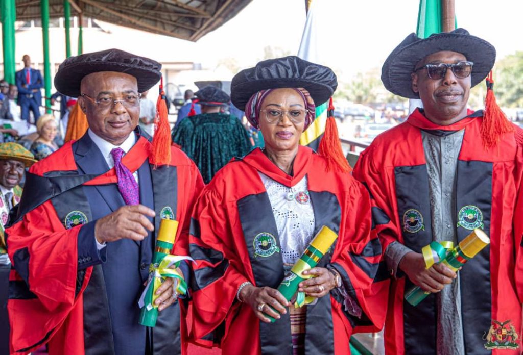 The wife of President Bola Tinubu, GCFR, Her Excellency, Senator (Mrs.) Oluremi Tinubu, CON, OON, the Governor of Imo State, Senator Hope Uzodimma, CON, and the Borno State Governor, Prof. Babagana Zulum, were conferred with Honorary Doctorate Degrees (Honoris Causa)