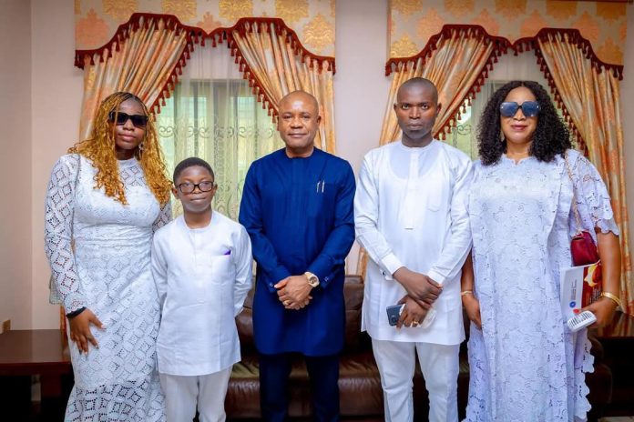 Gov. Mbah (3rd left) Hon. Anichukwu (2nd right) flanked by family members
