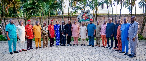 Gov. Otti(9th right) flanked by leaders of the visiting business groups