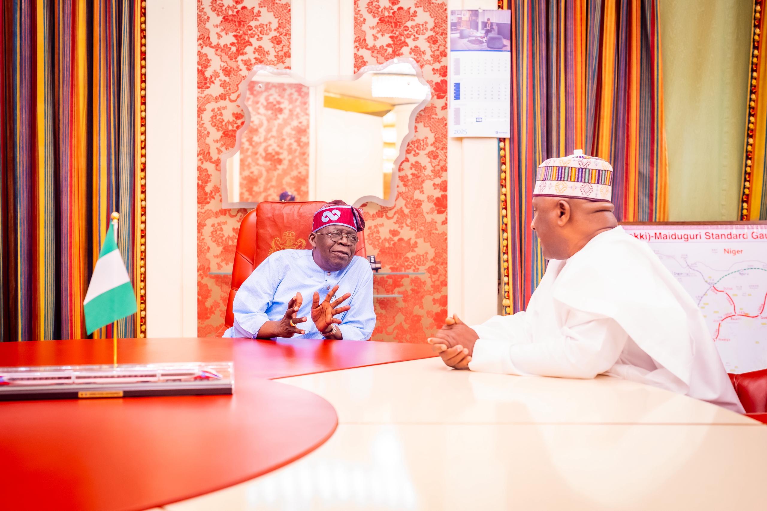 Abdul Samad Rabiu, (CFR) CON), Founder/Executive Chairman of BUA Group, with President Tinubu, at the Presidential Villa in Abuja, during his courtesy Visit.