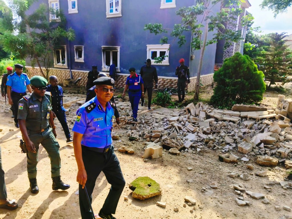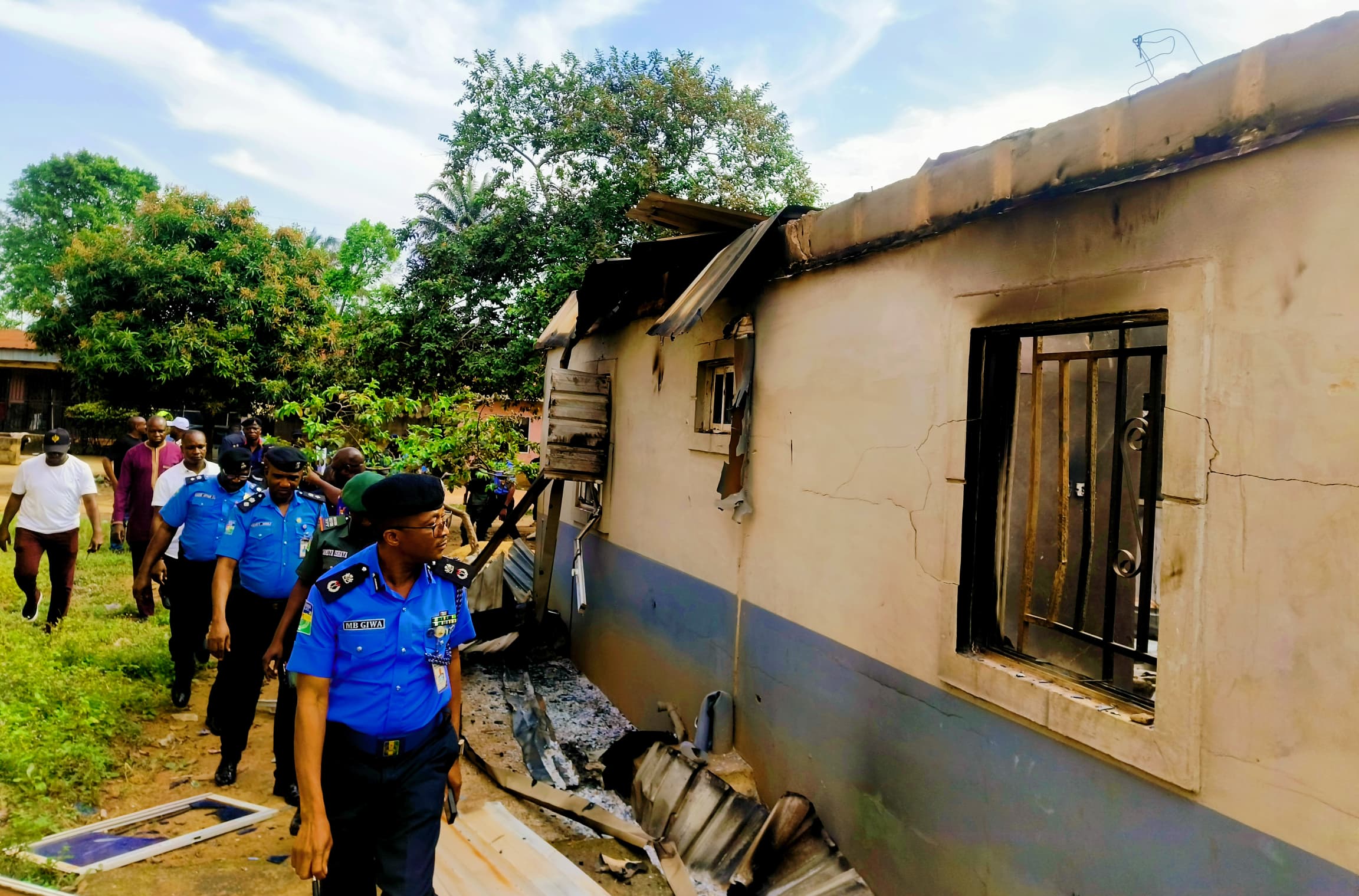 CP Giwa and his men inspect another property destroyed during the violent clashes