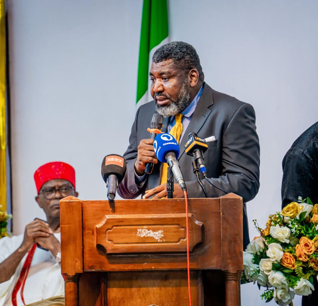 Gov. Otti delivering a public lecture in Lagos, Thursday, April 23